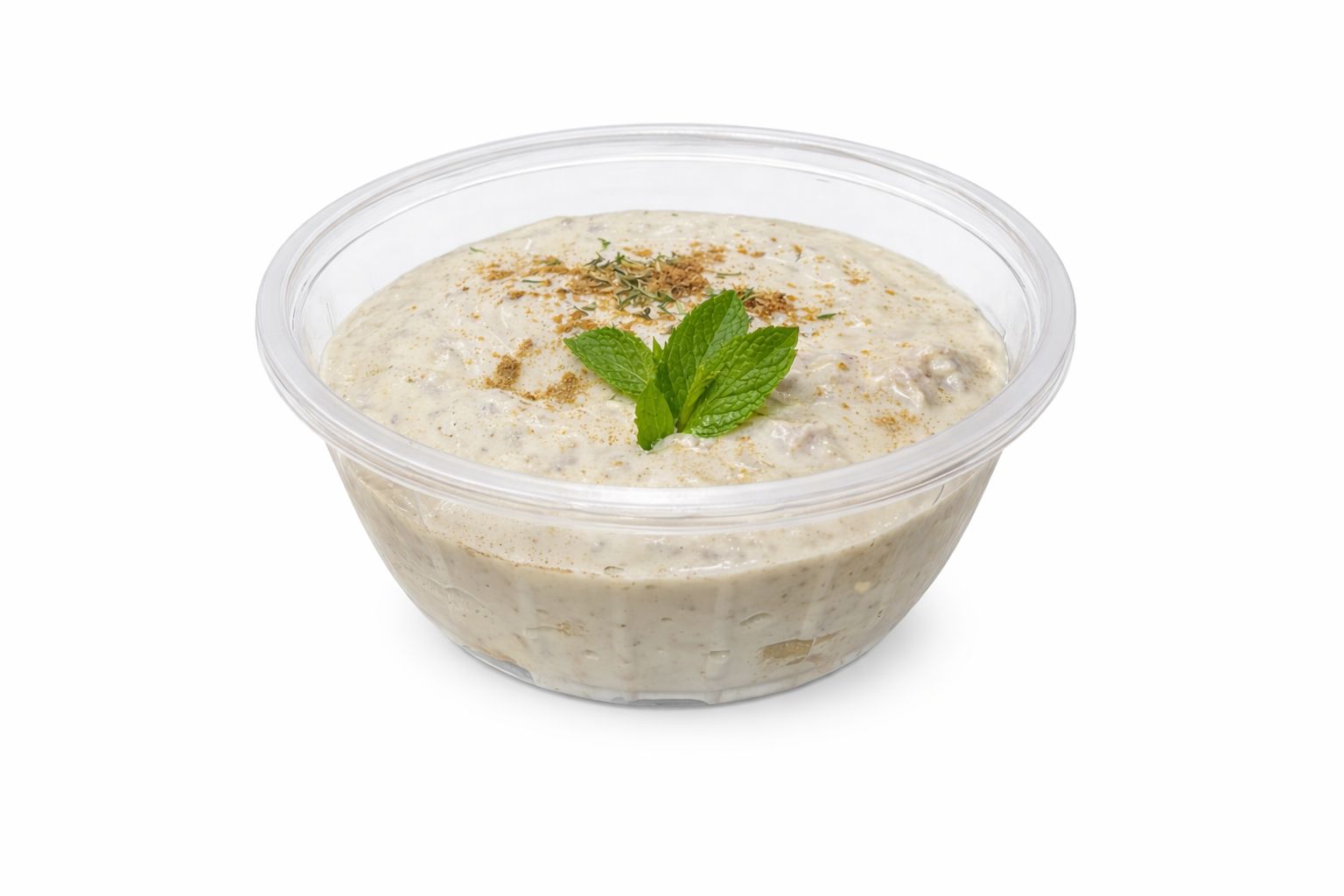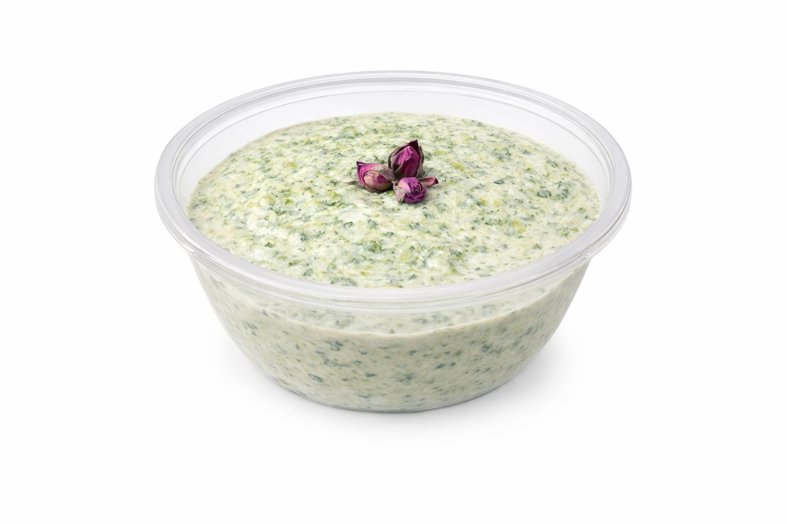 Creamy yogurt with cucumber pieces and Persian herbs.